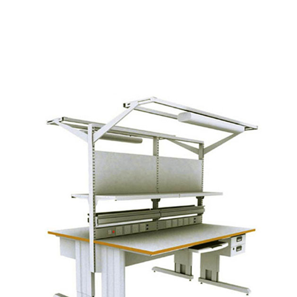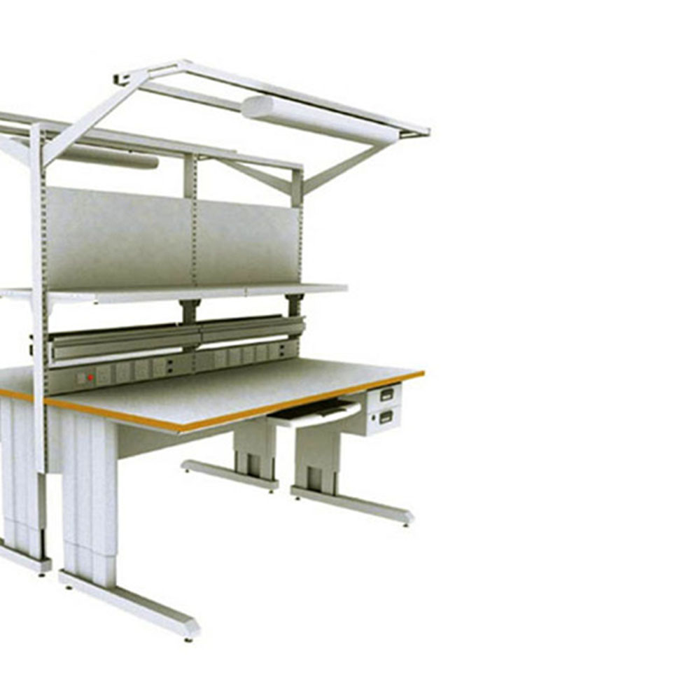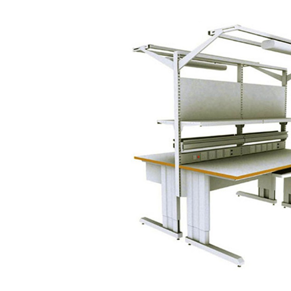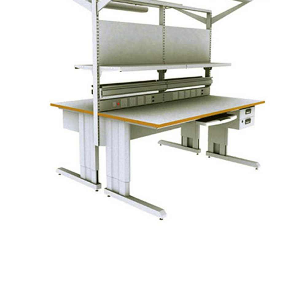 ■可双面对坐■台面采用27mm压模防火板,具有防静电、耐火和耐磨性。■台面材料阻值在106—109欧姆之间■工作台高度、水平及重心可调节,支架由防静电漆的钢板制成,坚固耐用■支腿高度在670—1120mm范围内可以任意调节■配件:电器板、灯架、2抽吊柜、背板、托架■该产品严格按照GB3007—97防静电标准和SJ/T11236—2001安全标准生产,具有整体防静电效果