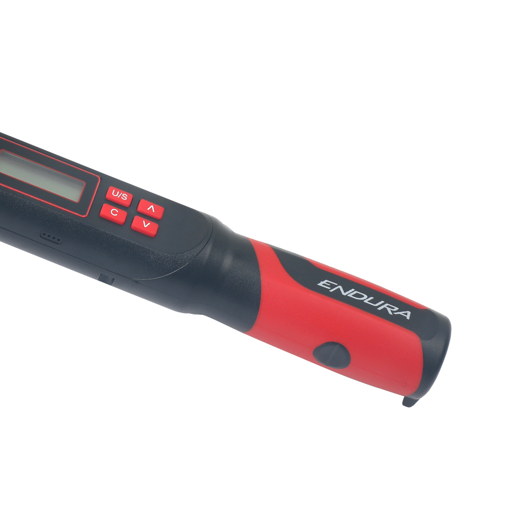 ■双色PP+TPR材质手柄,握感舒适■双向棘轮头,可正反转使用,正向精度±2%,反向精度±2%■有峰值保持(P)和实时显示(T)两种模式,达到预设扭力值时,灯光、蜂鸣双信号警示■可四种单位切换:N.m,ln.lb,Ft.lb,kg.cm■3分钟无操作会自动关机,以节约电量■使用两节五号(AA)干电池