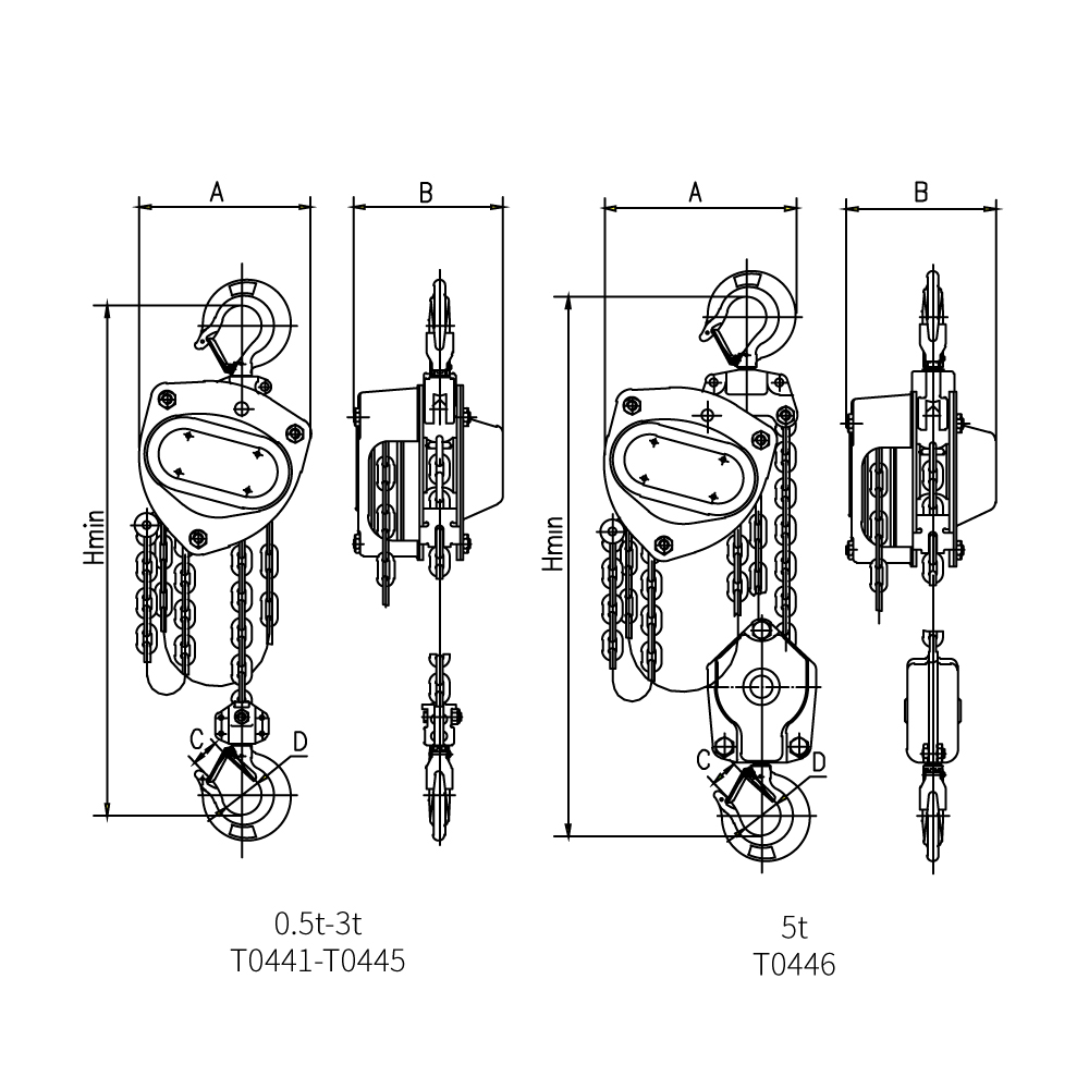 可选配超载限制器、专用储链袋、不锈钢起重链条