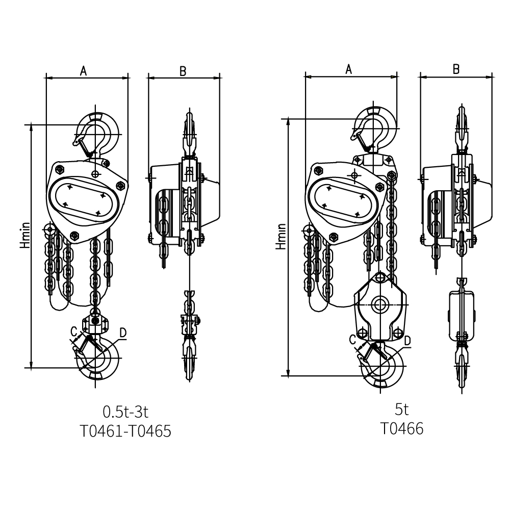 可选配超载限制器、专用储链袋、不锈钢起重链条
