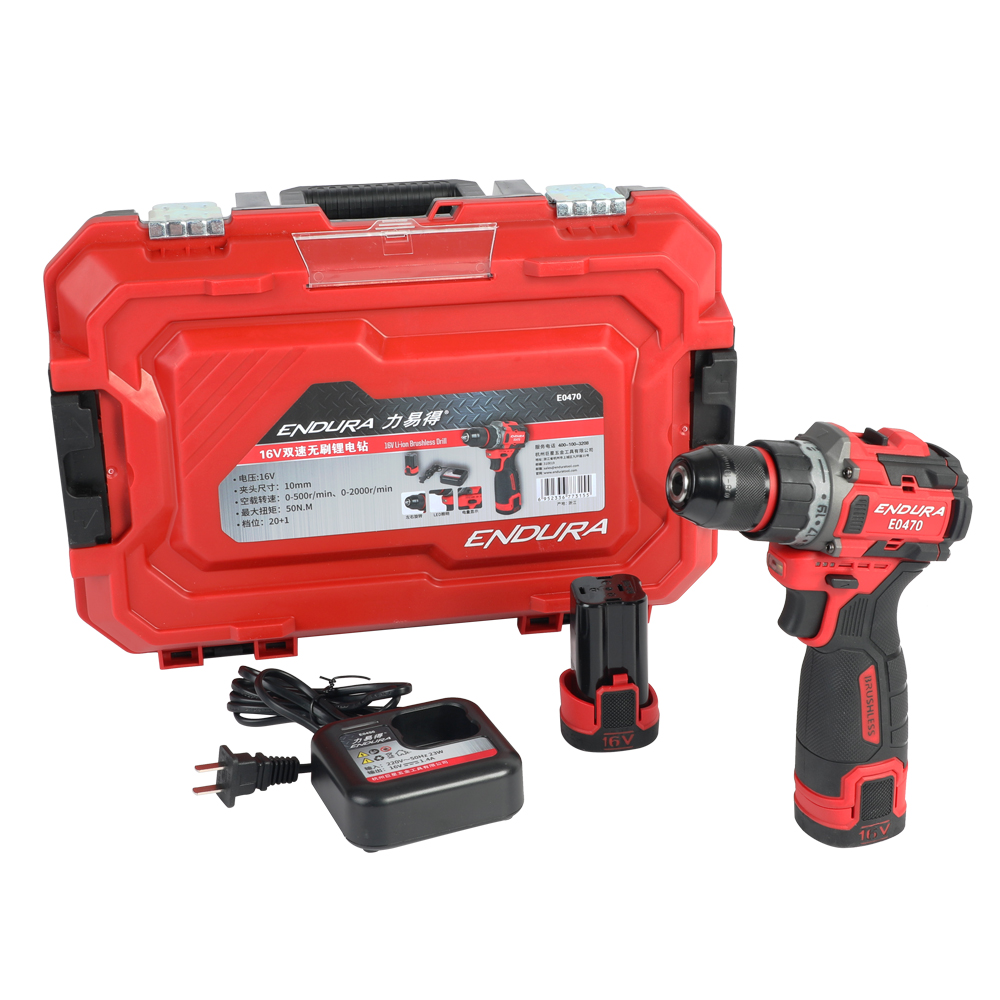 16V 双速无刷锂电钻(两电 2.0Ah 一充)